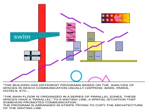 The uses, certain communication exchanges, so far don’t fit perfectly in our society: otherwise there would already exist a specific space for them. If there is a relationship between a society and the possibilities of its architecture, this can be an investigation of some of their current limits. I would like to see if architecture can help inhabitants to escape from moral, economical, social or any other constrains.