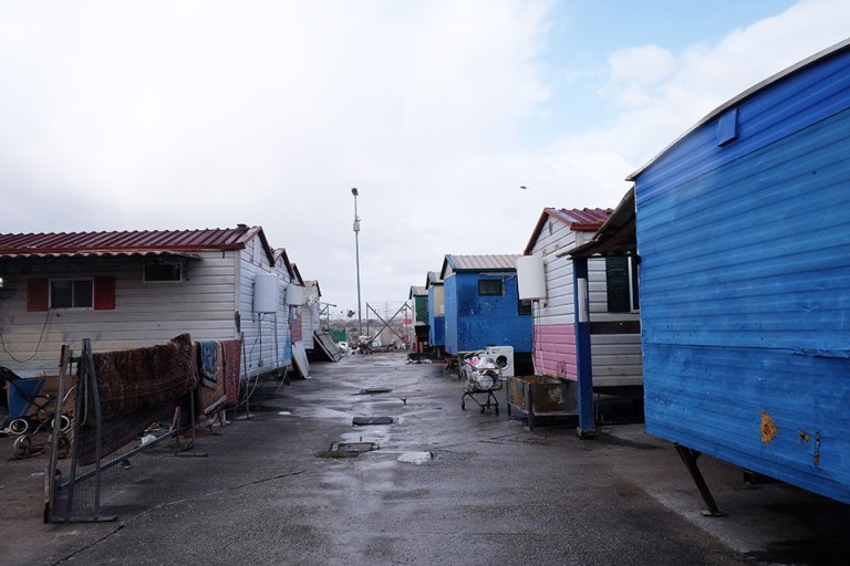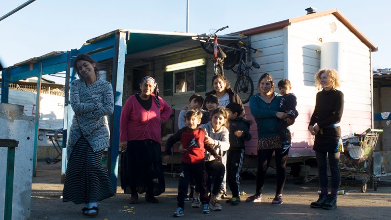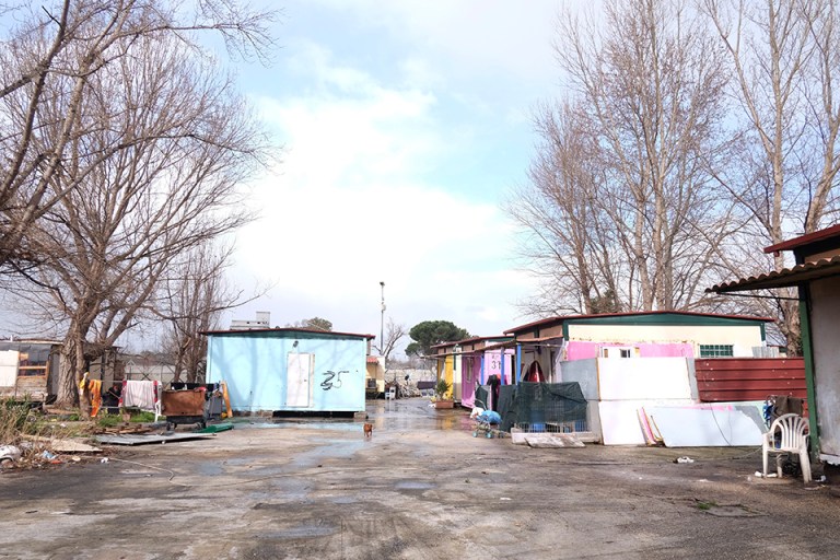 En el “Villaggio della Solidarietà”, en via di Salone, no hay arquitectura ni paisaje. El Estado destruyó las casas singulares que los gitanos se habían hecho y los trasladó a contenedores en medio de la nada. Iban a ser seis meses pero llevan once años en cajas de lata. La vida no es un simple tecnicismo.