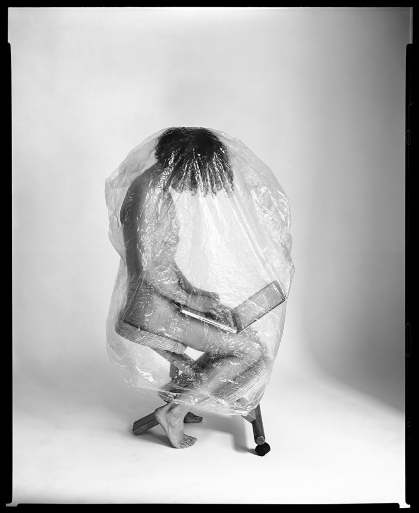 First Thematic Line. The year of 2025 represents a pivotal moment of technological transition poised to have a major social impact. In addition to the “virtual era” (the separation of place and time), the “fictional era” is now dawning (a real appearance without a real referent). While the virtual still retains a physical referent—be it an image, words, or a voice—the fictional has no real-world referent. It is pure invention. Photography, as a discipline, originates from the referent—a reality, even if it is a constructed one. My work Self-isolation, which is the origin of this exhibition, represents the bubble of self-isolation in this new way of living, where the body is not entirely present. This project includes images with an existential hue, most of which are set in the domestic space, where the body fades or lacks a firm presence. This is much like a life that slips through one’s fingers each day, testifying to this state of separation between place and presence, or to the inertia of a life divested of a part of its reality.