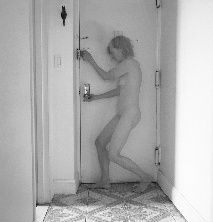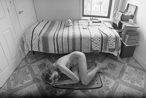 - FOTOGRAFÍA Autoaislamiento (2012). Esta imagen actúa como un espejo en el que confrontar mi forma de vivir. Soy potencialmente libre y al mismo tiempo estoy encerrada en una caja de mi propia creación.