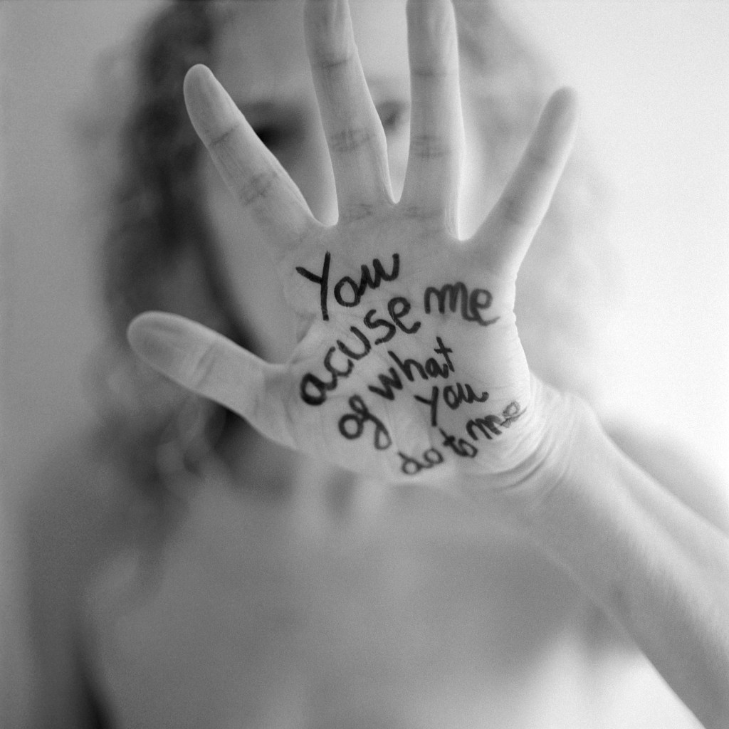 FOTOGRAFÍA Me acusas de lo que me haces (2025) Esta imagen hace de bisagra con el grupo de fotos anterior, en el que el estado (o el otro de la pareja) impone una narrativa según la cual se acusa a la víctima de lo acontecido. Esta retórica es costumbre en regímenes o relaciones autoritarios/as.